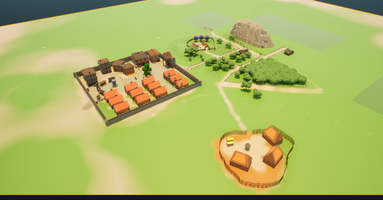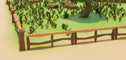 I then moved on to create a village layout with paths, trees, and fenced plots. This gave Velgron its first feeling of a living world, where NPCs will have daily routines such as farming, cutting wood, or trading goods.